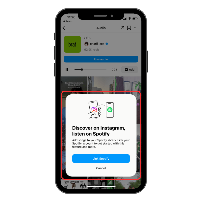 The first time you use this Add Song from Instagram to Spotify feature, you will be asked to connect your Spotify Account to your Insta account. Simply follow the steps that pop up.