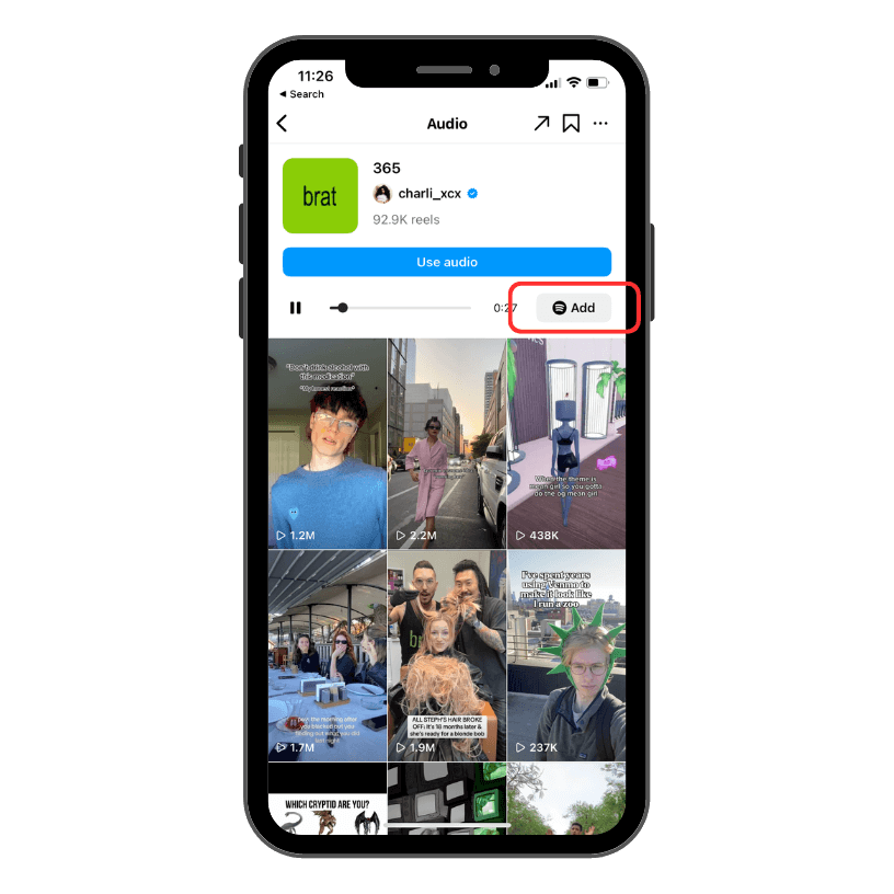 - Instant Playlist Additions: When fans discover music on Instagram and add it directly to their Spotify playlists, it means more opportunities for artists to gain streams, traction, and visibility on Spotify. This transition from social media discovery to listening helps drive exposure and builds momentum.
